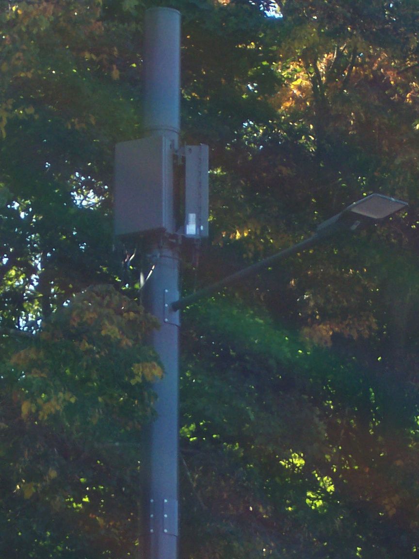 Alle fünf Standorte sind von Telefónica. Die LTE-Antennen befinden sich in der runden Mastspitze. Die rechteckigen Antennen darunten sind für 5G n78.