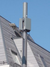 Alle fünf Standorte sind von Telefónica. Die LTE-Antennen befinden sich in der runden Mastspitze. Die rechteckigen Antennen darunten sind für 5G n78.